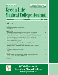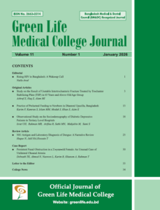 This Journal is recognized by Bangladesh Medical & Dental Council (BM&DC). The Green Life Medical College Journal of Bangladesh intends to publish the highest quality material on all aspects of medical science. It includes articles related to original research findings, technical evaluations, and reviews. In addition, it provides readers opinion regarding the articles published in the journal.