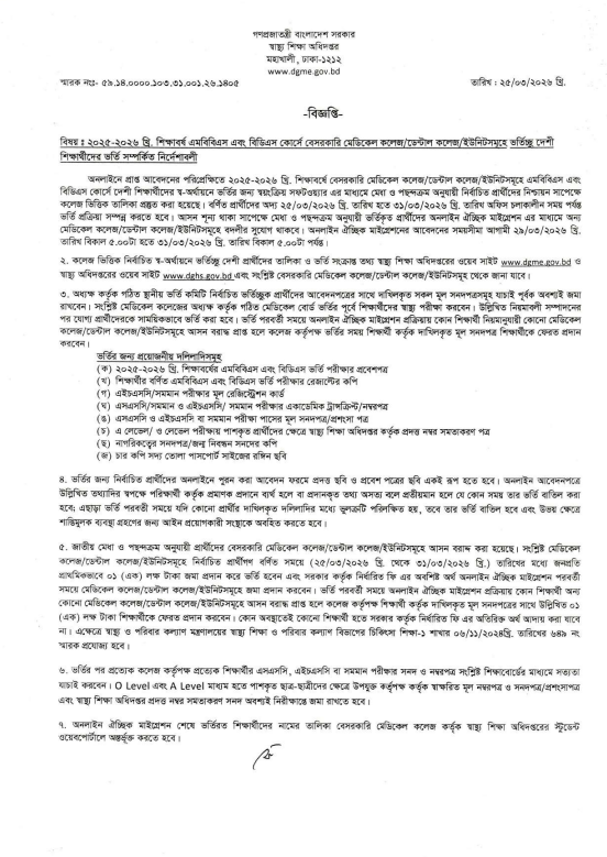 বেসরকারি মেডিকেল কলেজ/ডেন্টাল কলেজ/ইউনিটসমূহে শিক্ষার্থী ভর্তি সংক্রান্ত বিজ্ঞপ্তি News Notice 26 March 202629 March 2026Sanower Hossain বেসরকারি মেডিকেল কলেজ/ডেন্টাল কলেজ/ইউনিটসমূহে শিক্ষার্থী ভর্তি সংক্রান্ত বিজ্ঞপ্তি PDF